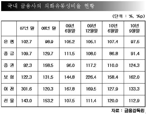 ±×µ¿¾È º¸Çè»ç ¿ÜÈÀ¯µ¿¼ººñÀ²Àº 2007³â ¸» 122.3%, 2008³â ¸» 131.5%, 2009³â 6¿ù 144.8%·Î ²ÙÁØÈ÷ Áõ°¡ÇÑ µÚ, 2009³â ¸» 226.4%·Î ±ÞÁõÇß´Ù.